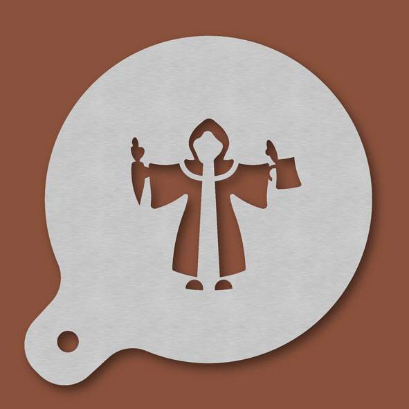 Cappuccino-Schablone Münchner Kindl, Außendurchmesser 120 mm, Motivdurchmesser ca. 70 mm, aus Edelstahl mit Handgriff und integriertem Aufhänger, spülmaschinengeeignet, Lieferung in Verkaufsverpackung ...