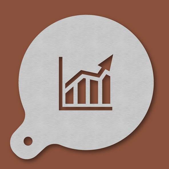 Cappuccino-Schablone Chart, Außendurchmesser 120 mm, Motivdurchmesser ca. 70 mm, aus Edelstahl mit Handgriff und integriertem Aufhänger, spülmaschinengeeignet, Lieferung in Verkaufsverpackung mit Kart ...