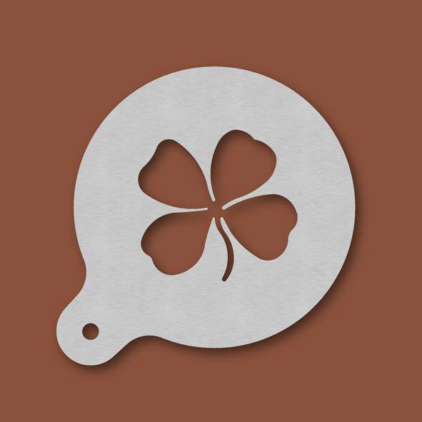Cappuccino-Schablone Kleeblatt, Außendurchmesser 100 mm, Motivdurchmesser ca. 60 mm, aus Edelstahl mit Handgriff und integriertem Aufhänger, spülmaschinengeeignet, Lieferung in Verkaufsverpackung mit ...