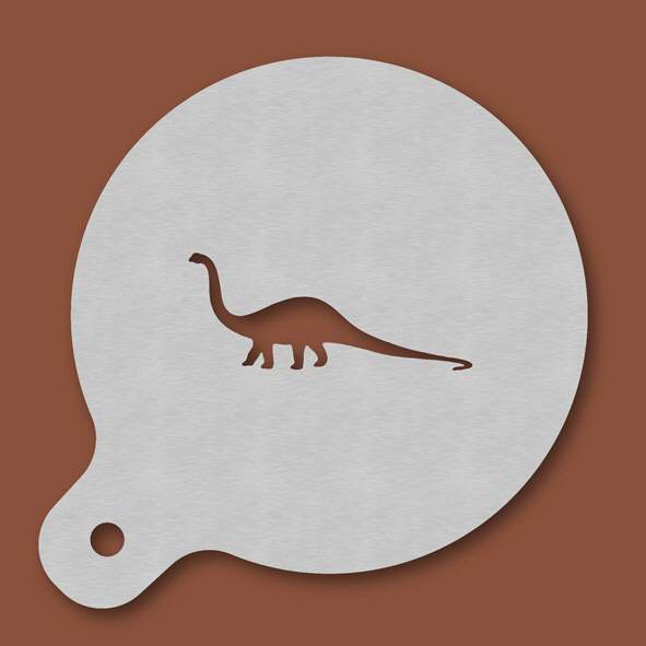 Cappuccino-Schablone Dinosaurier, Außendurchmesser 120 mm, Motivdurchmesser ca. 70 mm, aus Edelstahl mit Handgriff und integriertem Aufhänger, spülmaschinengeeignet, Lieferung in Verkaufsverpackung mi ...
