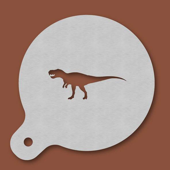 Cappuccino-Schablone Dinosaurier T-Rex, Außendurchmesser 120 mm, Motivdurchmesser ca. 70 mm, aus Edelstahl mit Handgriff und integriertem Aufhänger, spülmaschinengeeignet, Lieferung in Verkaufsverpack ...