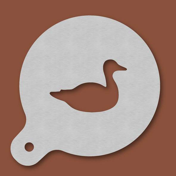 Cappuccino-Schablone Ente, Außendurchmesser 120 mm, Motivdurchmesser ca. 70 mm, aus Edelstahl mit Handgriff und integriertem Aufhänger, spülmaschinengeeignet, Lieferung in Verkaufsverpackung mit Karto ...