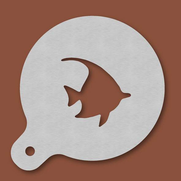 Cappuccino-Schablone Fisch, Außendurchmesser 120 mm, Motivdurchmesser ca. 70 mm, aus Edelstahl mit Handgriff und integriertem Aufhänger, spülmaschinengeeignet, Lieferung in Verkaufsverpackung mit Kart ...