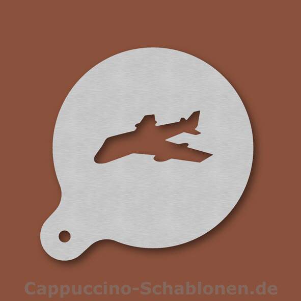 Cappuccino-Schablone Flugzeug, Außendurchmesser 100 mm, Motivdurchmesser ca. 60 mm, aus Edelstahl mit Handgriff und integriertem Aufhänger, spülmaschinengeeignet, Lieferung in Verkaufsverpackung mit K ...