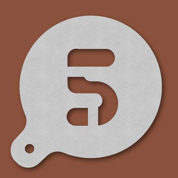 Cappuccino-Schablone Zahl 5, Außendurchmesser 120 mm, Schrifthöhe ca. 65 mm, aus Edelstahl mit Handgriff und integriertem Aufhänger, spülmaschinengeeignet, Lieferung in Verkaufsverpackung mit Kartonei ...