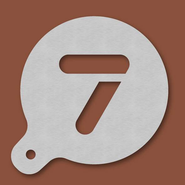 Cappuccino-Schablone Zahl 7, Außendurchmesser 120 mm, Schrifthöhe ca. 65 mm, aus Edelstahl mit Handgriff und integriertem Aufhänger, spülmaschinengeeignet, Lieferung in Verkaufsverpackung mit Kartonei ...
