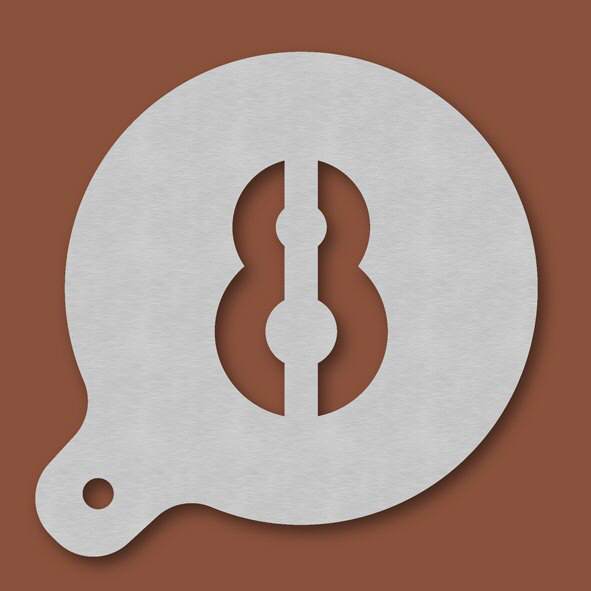 Cappuccino-Schablone Zahl 8, Außendurchmesser 120 mm, Schrifthöhe ca. 65 mm, aus Edelstahl mit Handgriff und integriertem Aufhänger, spülmaschinengeeignet, Lieferung in Verkaufsverpackung mit Kartonei ...