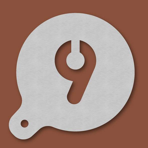 Cappuccino-Schablone Zahl 9, Außendurchmesser 120 mm, Schrifthöhe ca. 65 mm, aus Edelstahl mit Handgriff und integriertem Aufhänger, spülmaschinengeeignet, Lieferung in Verkaufsverpackung mit Kartonei ...