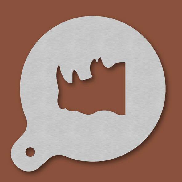 Cappuccino-Schablone Nashorn, Außendurchmesser 120 mm, Motivdurchmesser ca. 70 mm, aus Edelstahl mit Handgriff und integriertem Aufhänger, spülmaschinengeeignet, Lieferung in Verkaufsverpackung mit Ka ...