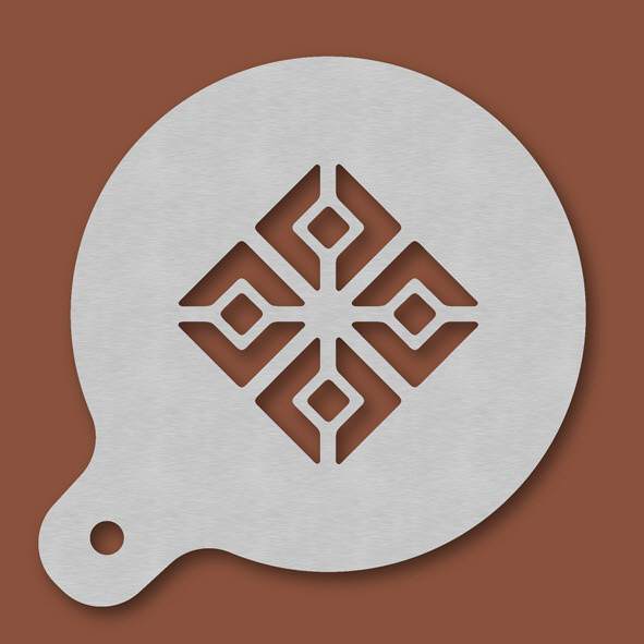 Cappuccino-Schablone Ornament, Außendurchmesser 120 mm, Motivdurchmesser ca. 70 mm, aus Edelstahl mit Handgriff und integriertem Aufhänger, spülmaschinengeeignet, Lieferung in Verkaufsverpackung mit K ...