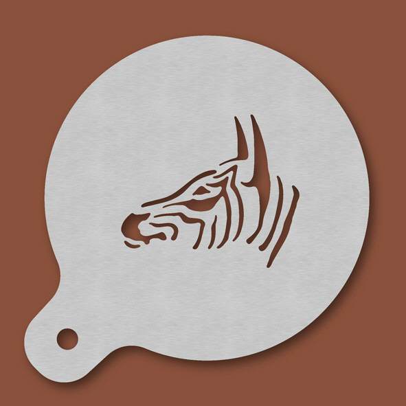 Cappuccino-Schablone Zebra, Außendurchmesser 120 mm, Motivdurchmesser ca. 70 mm, aus Edelstahl mit Handgriff und integriertem Aufhänger, spülmaschinengeeignet, Lieferung in Verkaufsverpackung mit Kart ...