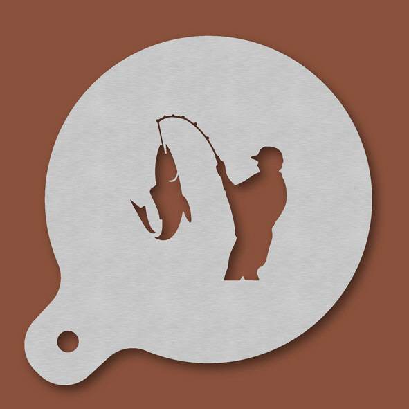 Cappuccino-Schablone Angler, Außendurchmesser 120 mm, Motivdurchmesser ca. 70 mm, aus Edelstahl mit Handgriff und integriertem Aufhänger, spülmaschinengeeignet, Lieferung in Verkaufsverpackung mit Kar ...