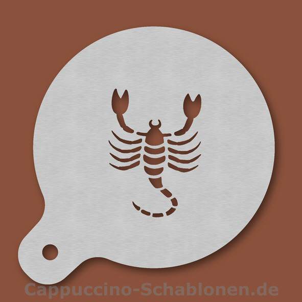 Cappuccino-Schablone Sternzeichen Skorpion, Außendurchmesser 120 mm, Motivdurchmesser ca. 70 mm, aus Edelstahl mit Handgriff und integriertem Aufhänger, spülmaschinengeeignet, Lieferung in Verkaufsver ...