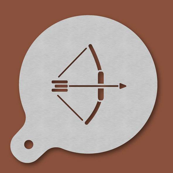Cappuccino-Schablone Bogenschießens, Außendurchmesser 120 mm, Motivdurchmesser ca. 70 mm, aus Edelstahl mit Handgriff und integriertem Aufhänger, spülmaschinengeeignet, Lieferung in Verkaufsverpackung ...