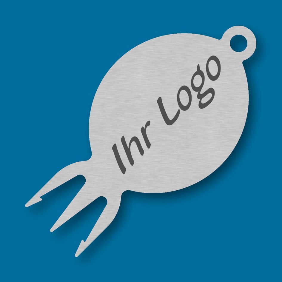Currywurst-Gabel 01 aus Edelstahl mit Aufhänger, 97 x 50 x 1.5 mm, inklusive Logogravur
