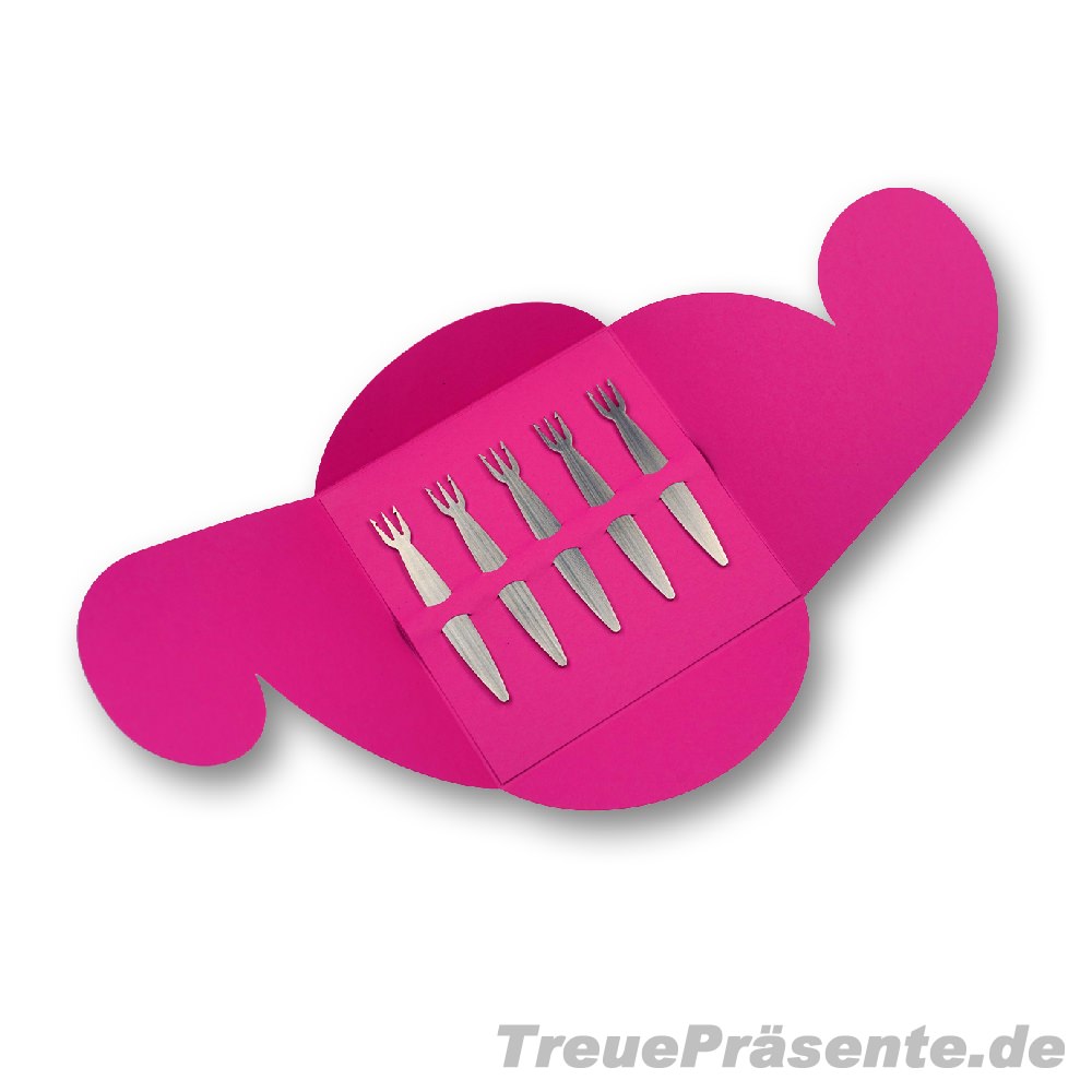Geschenkset fünf Pommesgabeln/Käsespieße 01 aus Edelstahl, Geschenkverpackung in Standard-Farbe nach Wahl