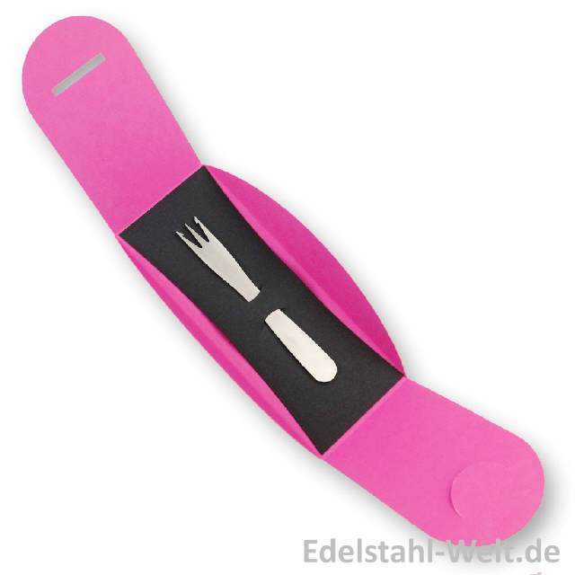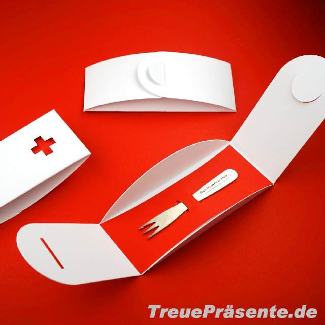 Pommesgabel inkl. individueller Lasergravur (Logo Ihres Kreisverbandes o. ä. - ohne Vorkosten!) in Geschenkverpackung 03 rot/00 reinweiß, inkl. Ausstanzung Kreuz