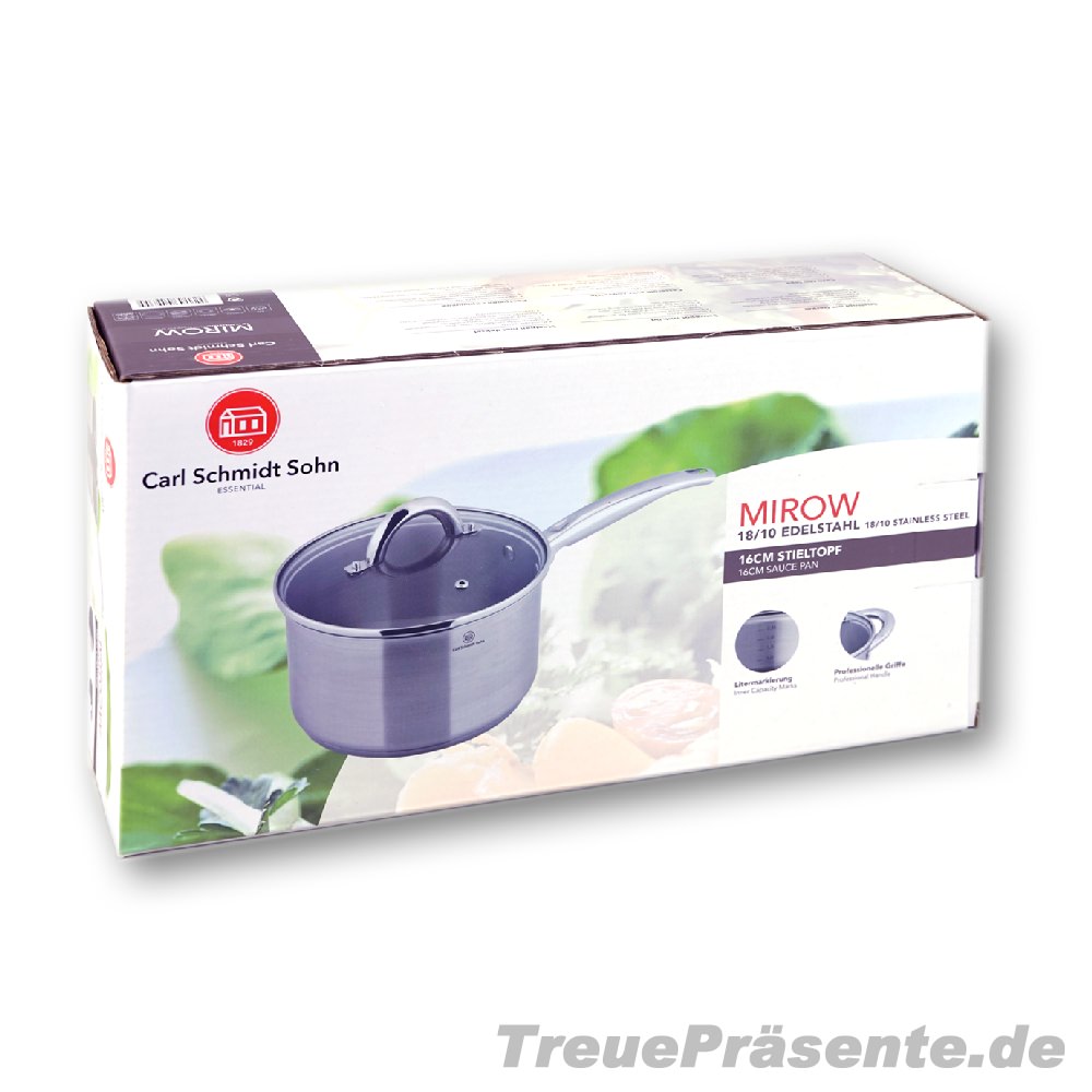 Stieltopf 16 cm, Edelstahl mit Glasdeckel, für alle Herdarten