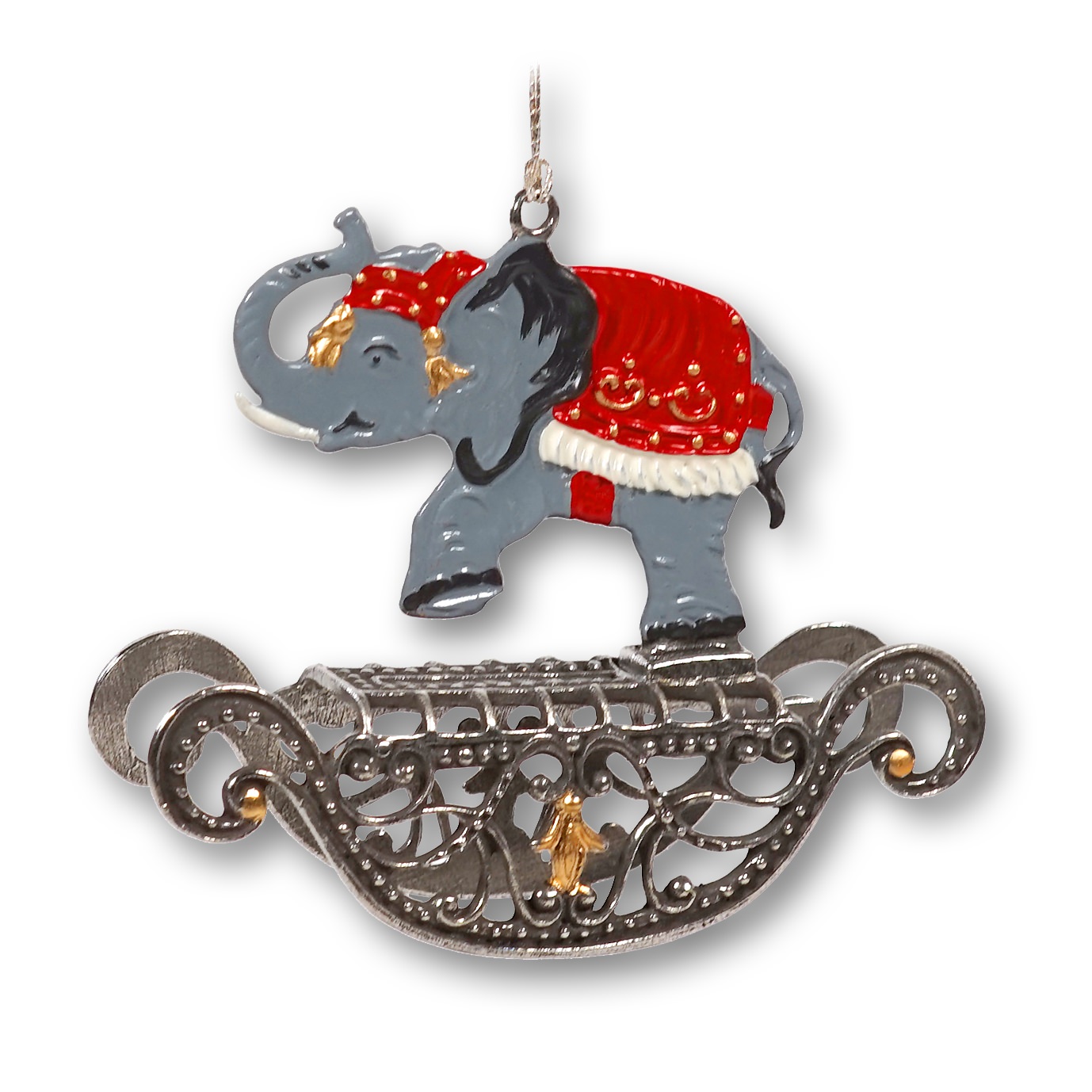 3D-Zinnminiatur Elefant auf Schaukel, H: 6,0 cm, in Geschenkverpackung