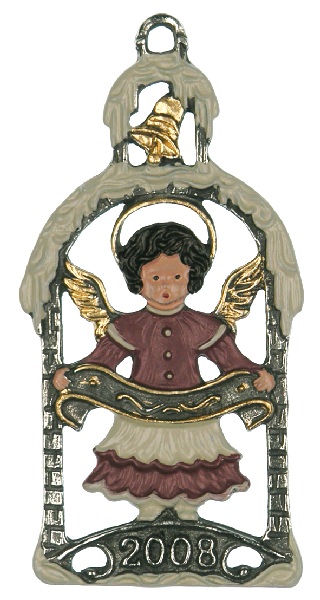 Zinnfigur Weihnachtsmotiv 2008 Engel mit Band, H: 6,0 cm