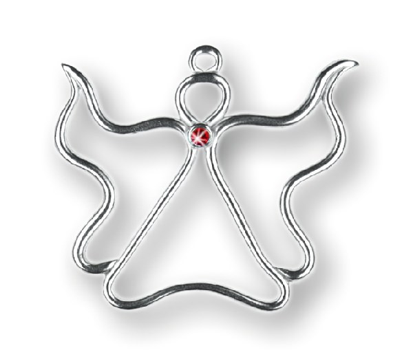 Christbaumschmuck Engel mit 1 Stein rot doppelseitig poliert, Zinn 93%, H: 7,0 cm