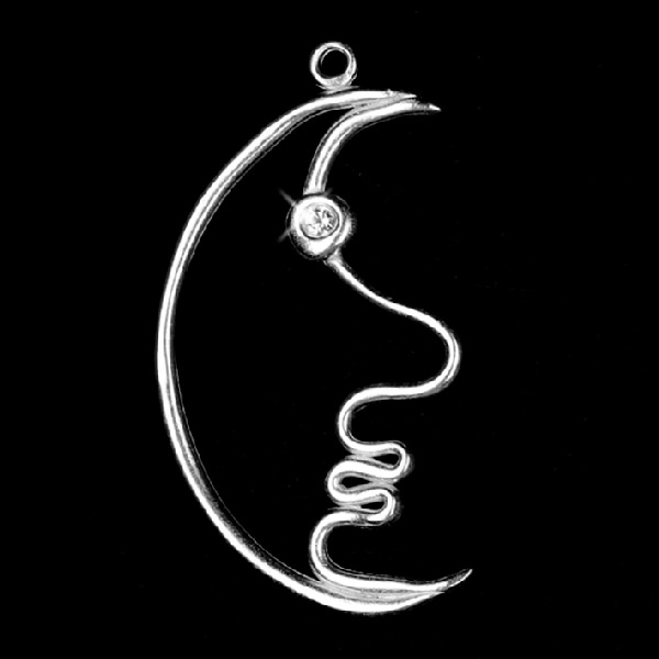 Christbaumschmuck Mond mit 1 Stein kristall poliert, Zinn 93%, H: 7,5 cm