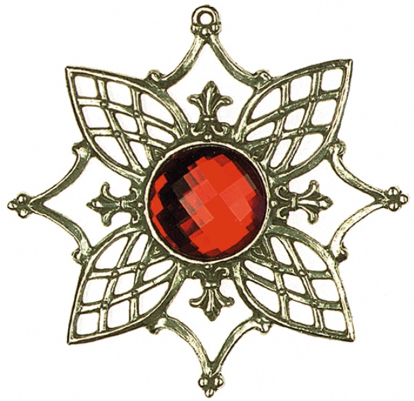 Ornament-Stern antik Nr. 1 mit Schmuckstein rot, Zinn 93%, H: 9,0 cm