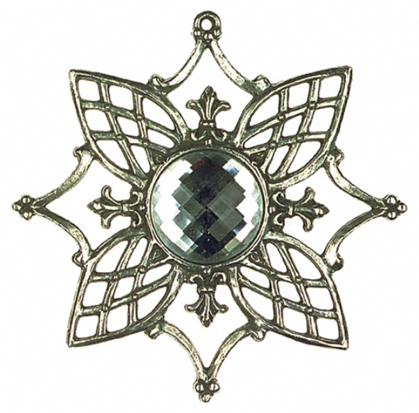 Ornament-Stern antik Nr. 1 mit Schmuckstein weiß, Zinn 93%, H: 9,0 cm