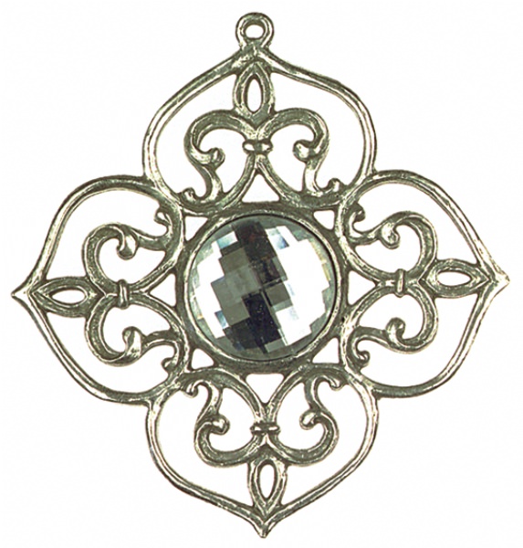 Ornament-Stern antik Nr. 2 mit Schmuckstein weiß, Zinn 93%, H: 9,0 cm