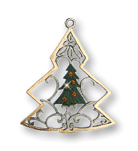 Zinnfigur Baum in Baum mit 10 Steinen gelb, doppelseitig, H: 6,5 cm, in Geschenkverpackung
