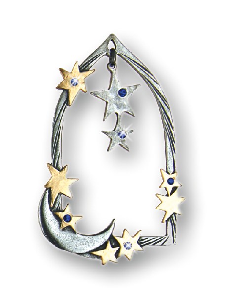 Zinnfigur Bogen mit 7 Steinen blau und beweglichem Innenteil Sterne mit 4 Steinen blau, doppelseitig, H: 8,0 cm, in Geschenkverpackung