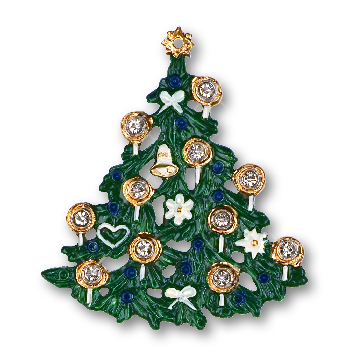 Zinnfigur Christbaum mit 22 Steinen kristall, doppelseitig, H: 7,0 cm, in Geschenkverpackung