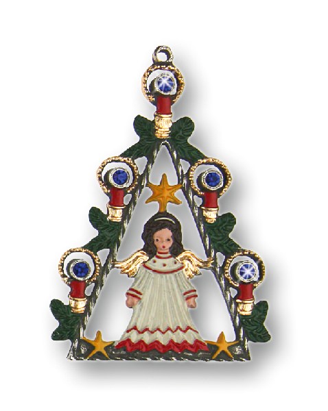 Zinnfigur Engel mit Kerzen und 10 Steinen blau, doppelseitig, H: 7,0 cm, in Geschenkverpackung