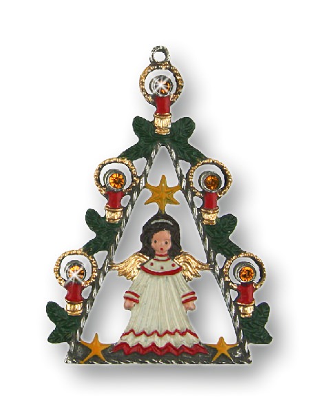 Zinnfigur Engel mit Kerzen und 10 Steinen gelb, doppelseitig, H: 7,0 cm, in Geschenkverpackung