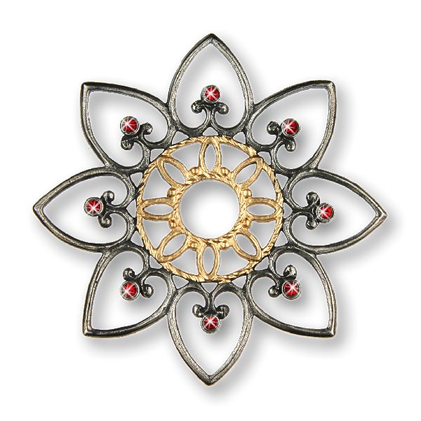 Zinnfigur Ornament-Blume mit 16 Steinen rot, doppelseitig, H: 9,0 cm, in Geschenkverpackung