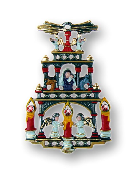 Zinnfigur Weihnachtspyramide mit 6 Steinen rot, doppelseitig, H: 7,0 cm, in Geschenkverpackung