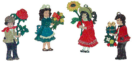 Sortiment "Gratulanten" Zinnfiguren doppelseitig (Inhalt: 12 Stück, je 3 Stück pro Motiv)