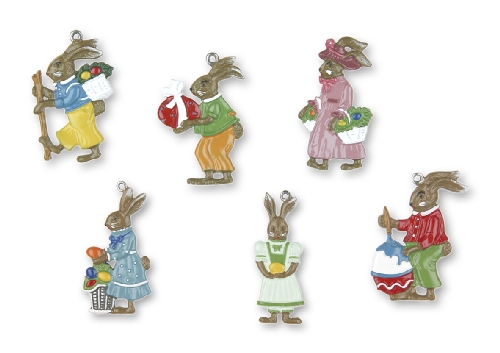 Sortiment "Hasenfamilie" Zinnfiguren doppelseitig (Inhalt: 18 Stück, je 3 Stück pro Motiv)
