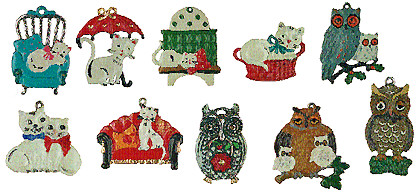 Sortiment "Katzen & Eulen" Zinnfiguren doppelseitig (Inhalt: 30 Stück, je 3 Stück pro Motiv)