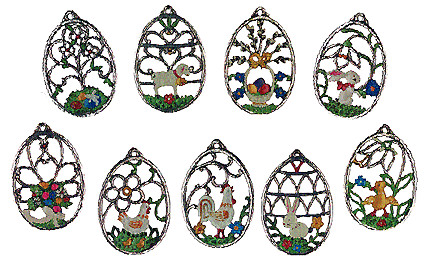 Sortiment "Ostereier" Zinnfiguren doppelseitig (Inhalt: 27 Stück, je 3 Stück pro Motiv)