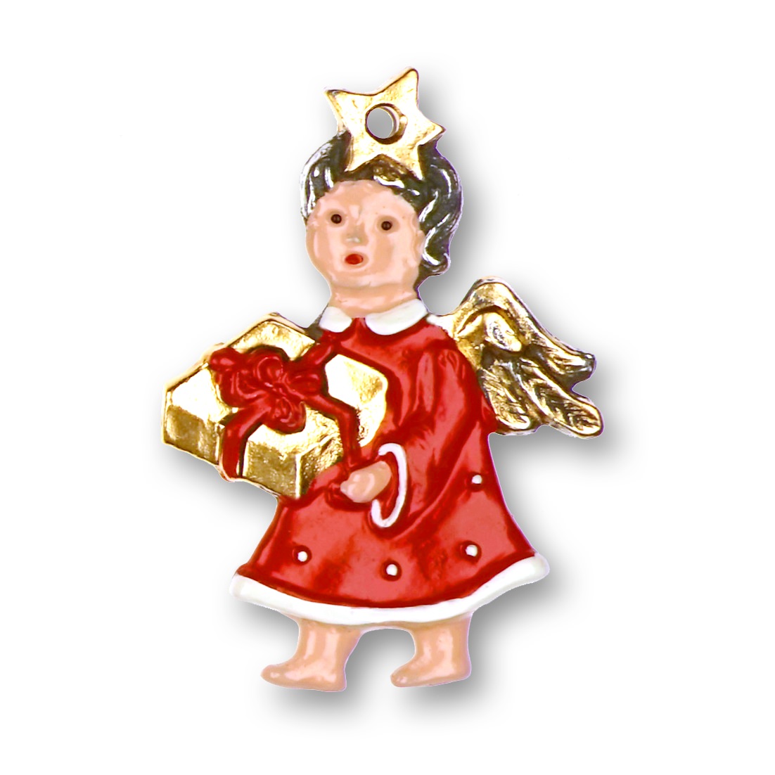 Zinnfigur Engel mit Geschenk, doppelseitig, H: 3,5 cm