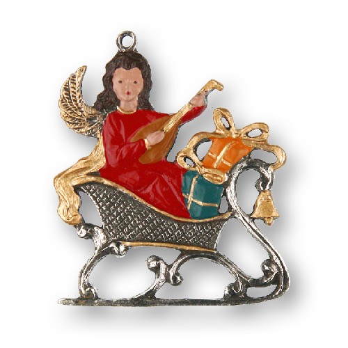 Zinnfigur Engel mit Schlitten doppelseitig, H: 6,0 cm