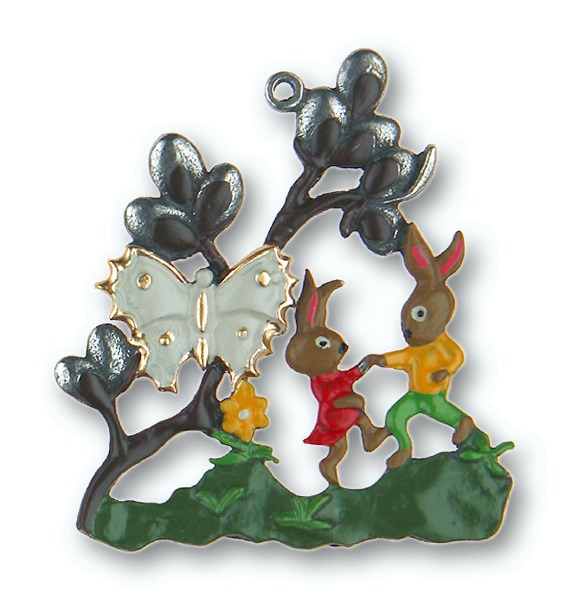 Zinnfigur Hasen mit Schmetterling doppelseitig, H: 5,5 cm