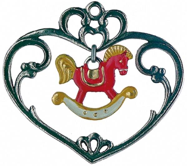 Zinnfigur Herz mit beweglichem Innenteil Schaukelpferd, H: 5,5 cm