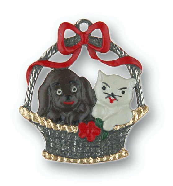 Zinnfigur Hund und Katze im Körbchen doppelseitig, H: 3,5 cm