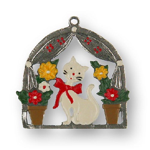 Zinnfigur Katze mit Blumen im Fenster doppelseitig, H: 4,0 cm