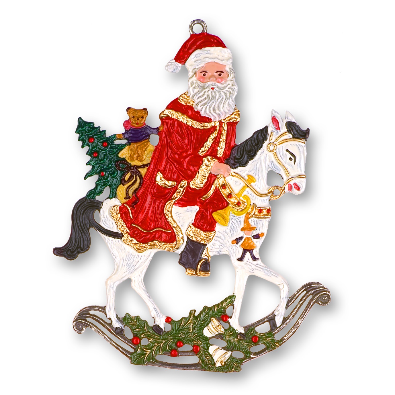 Zinnfigur Weihnachtsmann auf weißem Pferd, H: 10,5 cm