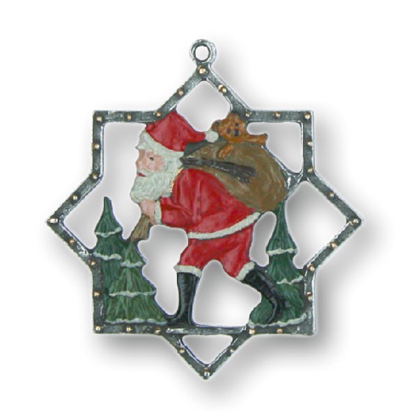 Zinnfigur Weihnachtsmann im Stern doppelseitig, H: 5,5 cm