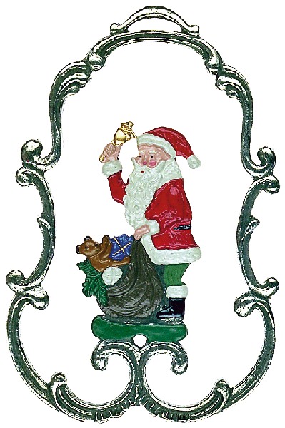Zinnfigur Weihnachtsmann mit Sack im Rahmen, H: 11,5 cm