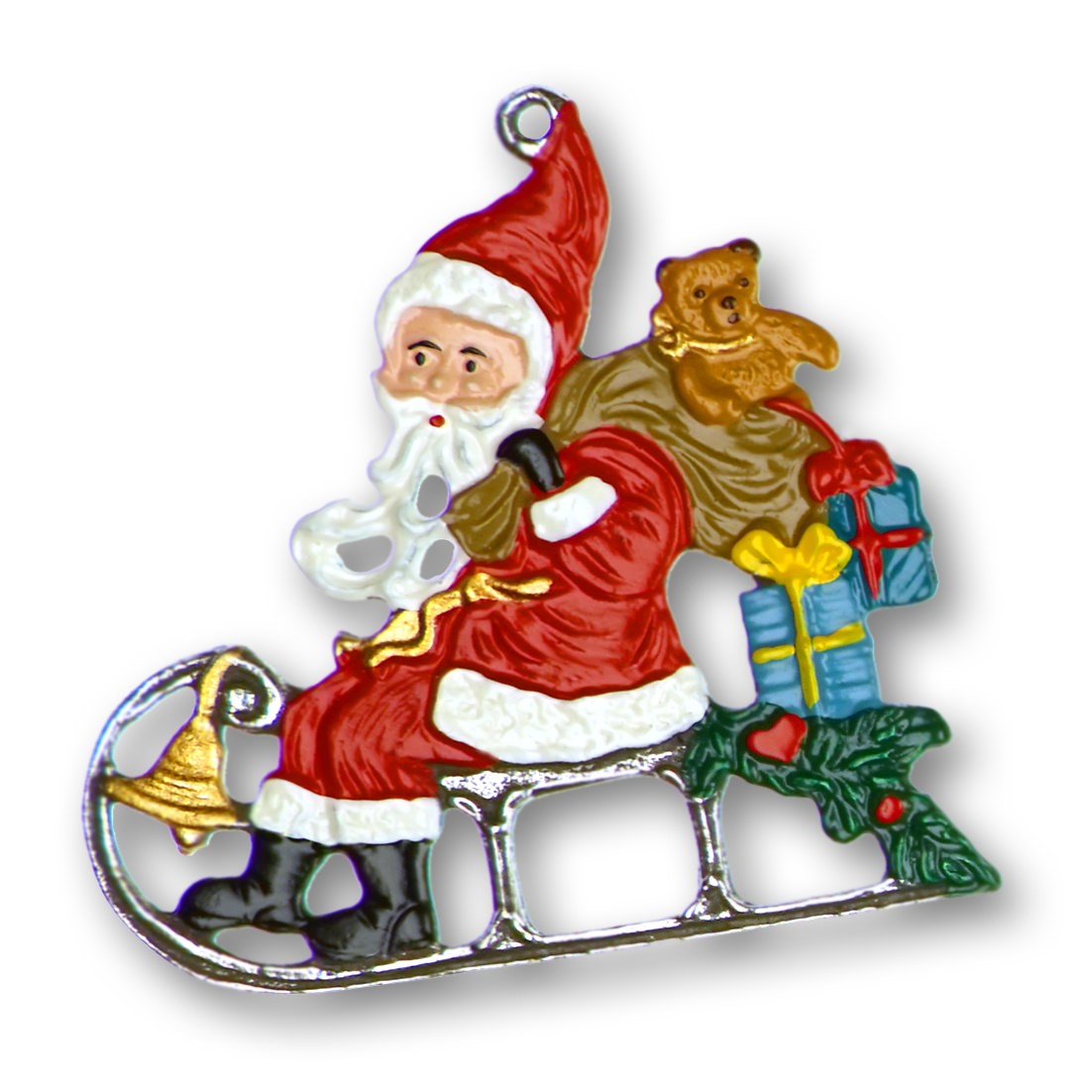 Zinnfigur Weihnachtsmann sitzend auf Schlitten, H: 4,5 cm